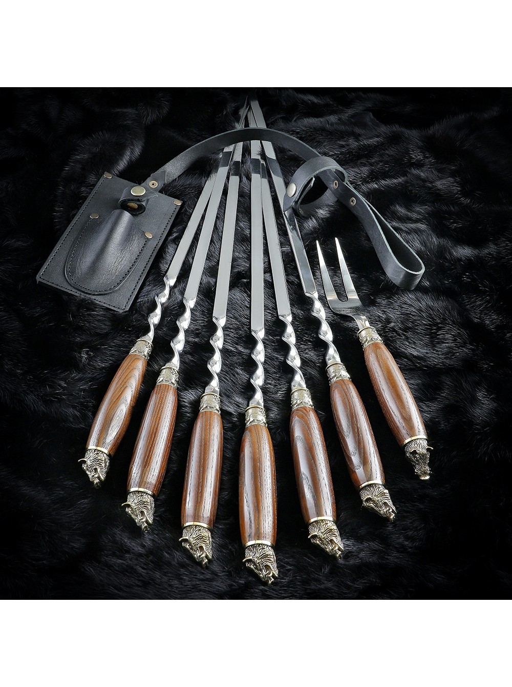 "Кабанчики", шампури + виделка у шкіряному сагайдаку.