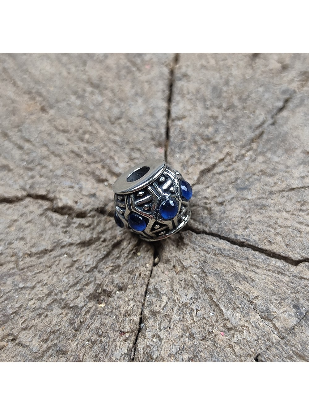 Темлячная бусина (ТБ-106) "Камни" синий, белая бронза