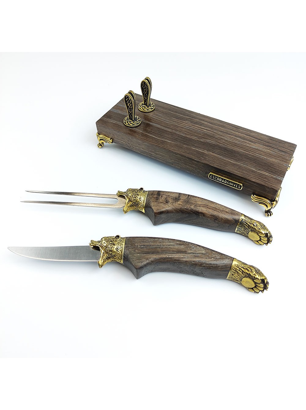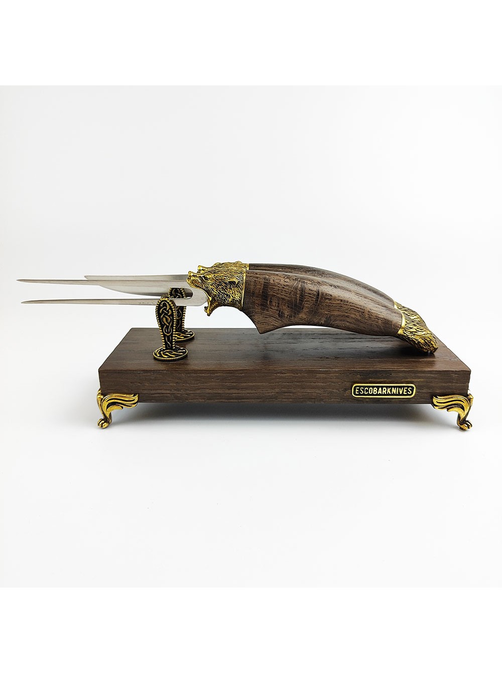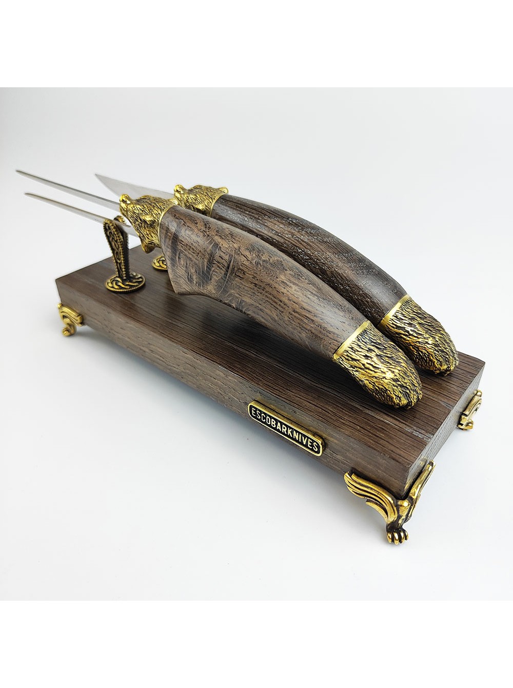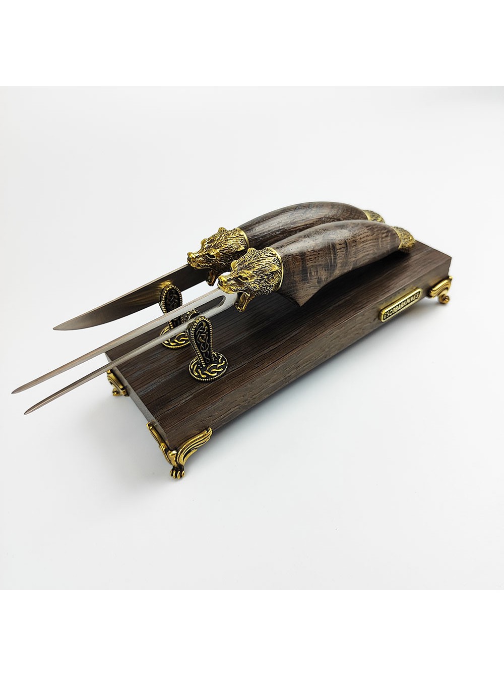 Веделка та ніж ручної работи, дубова підставка, ручна робота
