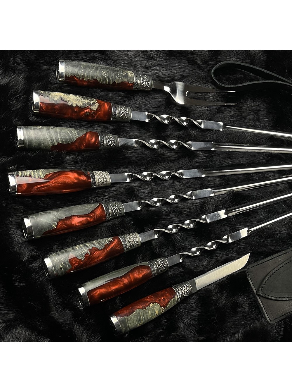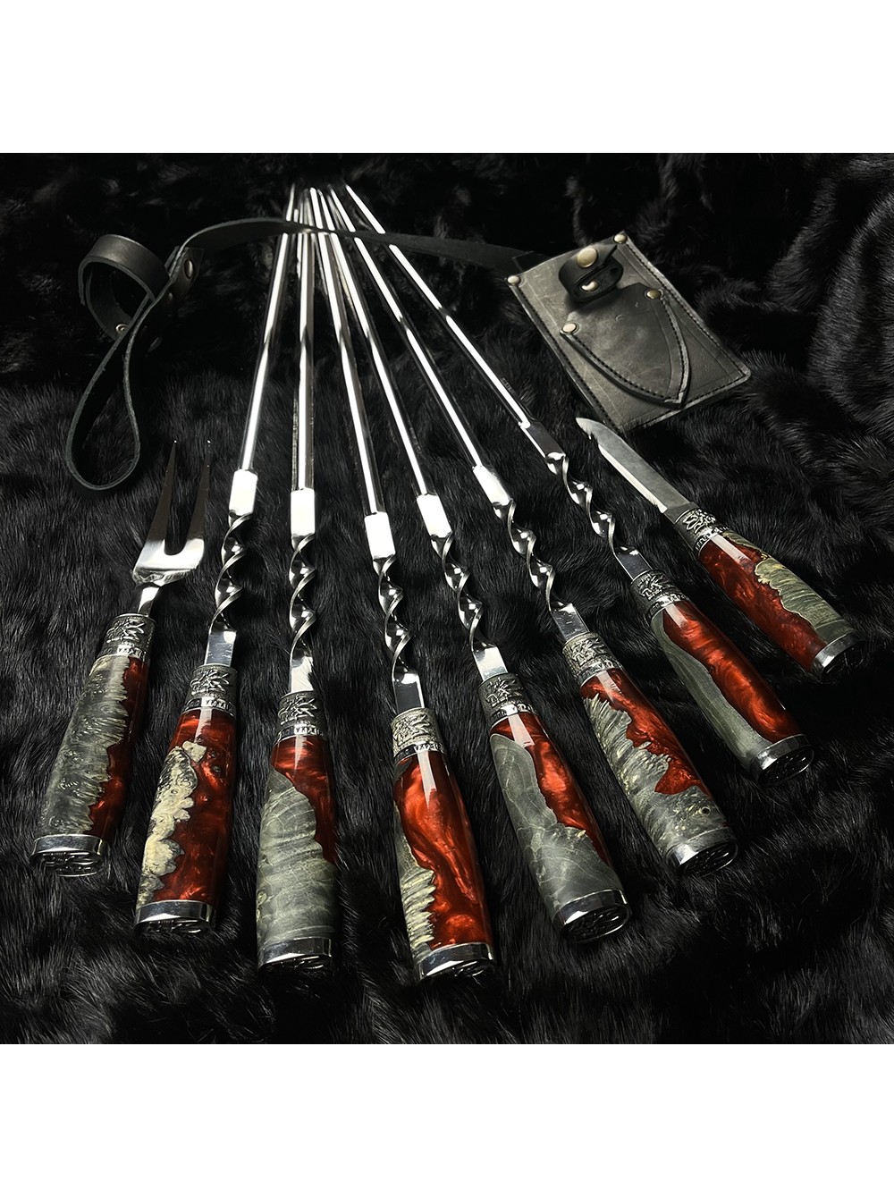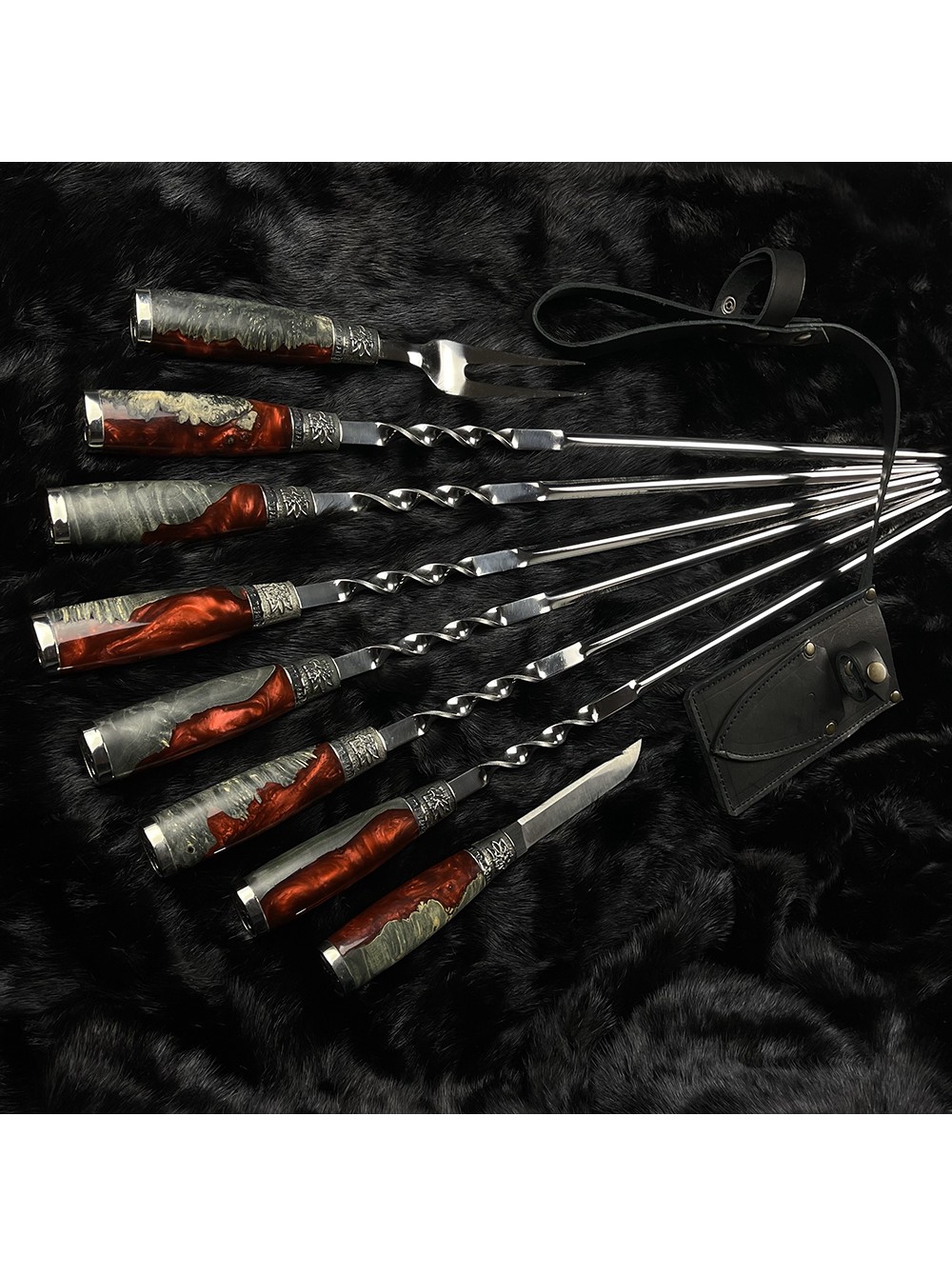 "Патріот" класичні, шампури + виделка + ніж в чохлі (черв./чор.)